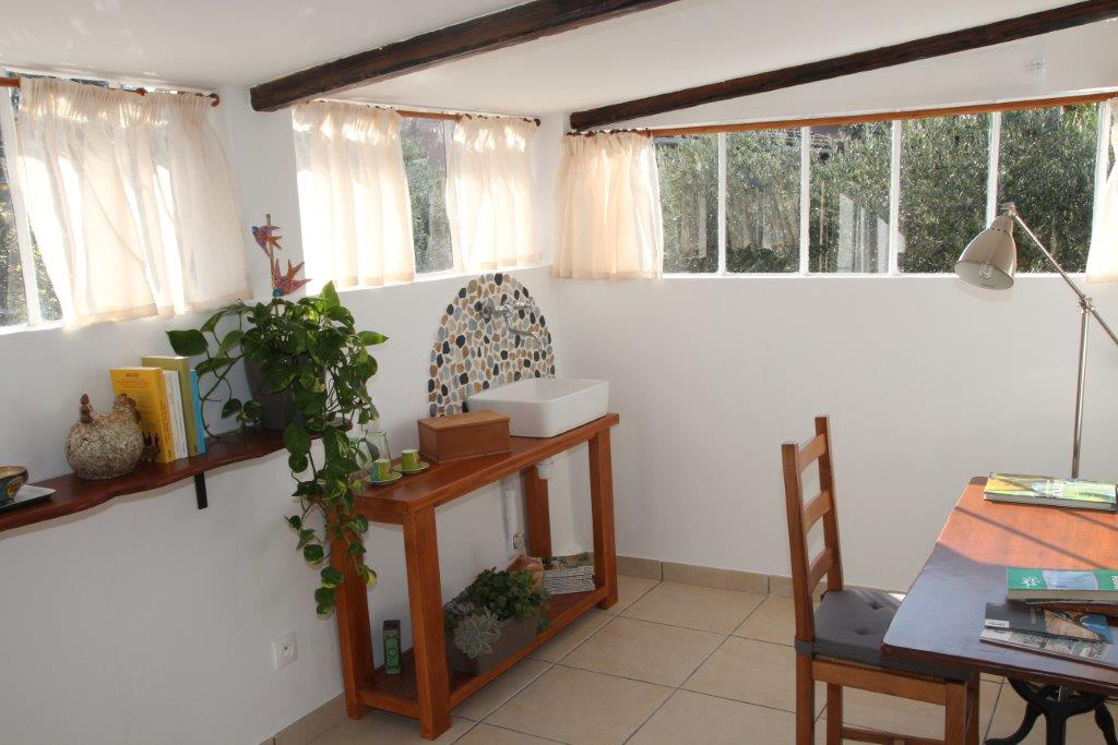 Le « cabanon », situé dans le jardin au rez-de-chaussée, est une petite maison indépendante, devant le bassin aux poissons, avec son salon privatif et sa salle d’eau privative.